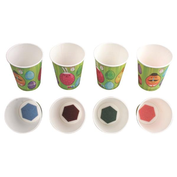 - 4 papírové kelímky s barvou: