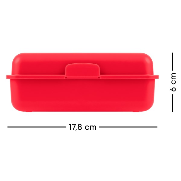 Výrazně červený plastový box na svačinu s módní ikonou Minnie.