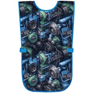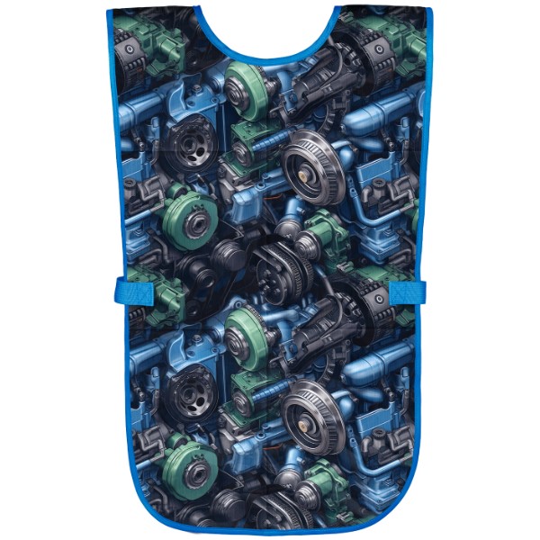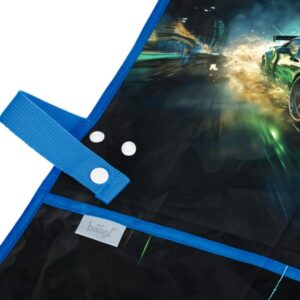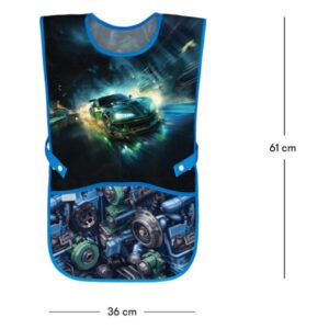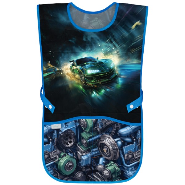 Nový střih praktických zástěrek na výtvarku tentokrát s motivem závodního auta.