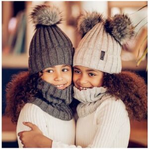 Dívčí zimní čepice s velkými bambulemi připomíná roztomilé zvířátko s oušky. Hodí se na běžné každodenní nošení.