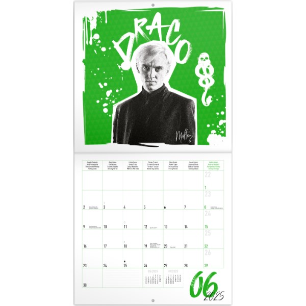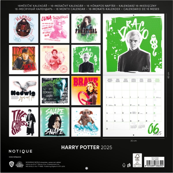 Poznámkový kalendář s dvanácti fotografiemi oblíbených hrdinů z kouzelnického světa.