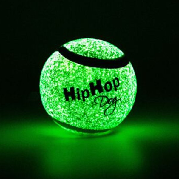 Tenisový míč značky HIPHOP DOG, ale není jen obyčejný míč, tato nevšední hračka pro psy v sobě skrývá několik vychytávek, které z něj dělají perfektního společníka pro noční hry.