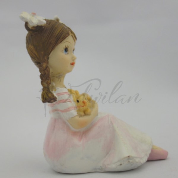Sedící holčička s králíčkem, vhodná jako velikonoční dekorace, je vyrobena z polystonu.