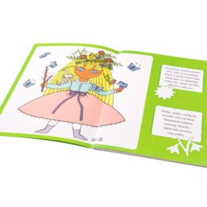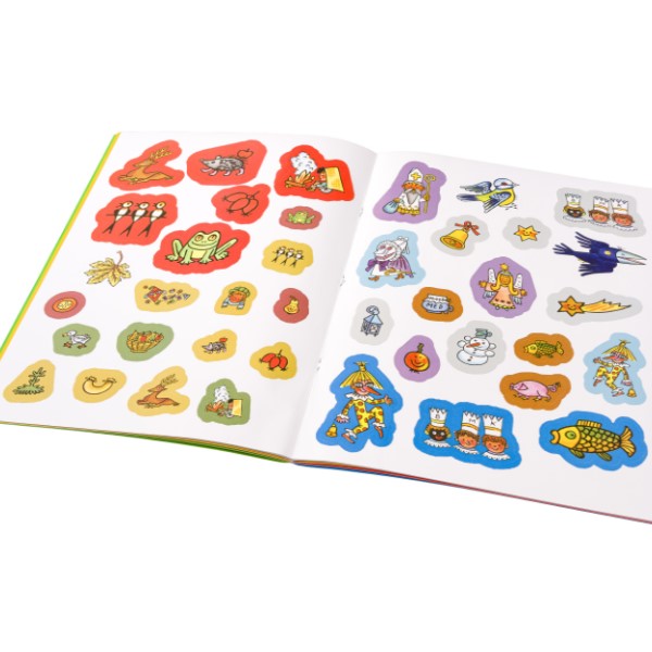 Uprostřed knížky pak objeví velké množství samolepek. Mezi nimi najdou nejen ty, které představují správnou odpověď na veršované hádanky, ale i celou řádku jiných, které poslouží k dalším hrám, jež podpoří dětskou kreativitu, jemnou motoriku a paměť.