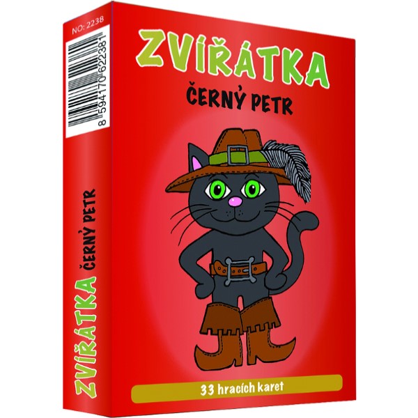 Hra pro tři a více hráčů se skládá z 33 karet a je rozdělena do 16 dvojic, z nichž každá má současně stejný znak i barvu. Jediná karta nemá označení. Je to ČERNÝ PETR.. A jak se Černý Petr hraje? Rozdají se všechny listy a kdo získá dvojice se stejným označením, odloží je hned stranou. Začíná hráč po levici rozdávajícího tak, že si od něj vytáhne libovolnou kartu. Hra pokračuje dokola stejným způsobem. Hráči po levici táhnou list od souseda po pravici a každou shodnou dvojici odloží. Vyhrává ten, kdo se zbaví všech karet jako první.