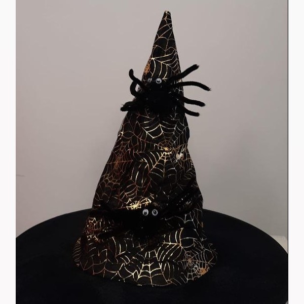 Čarodějnický klobouk s pavoukem.