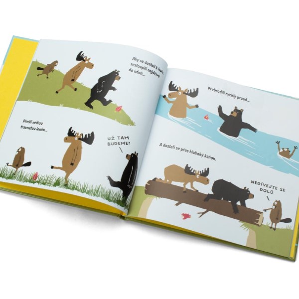 V této veselé moderní bajce plné napínavého dobrodružství se seznámíte s roztomilými postavičkami a ponaučením, jak je důležité spojit své schopnosti a navzájem spolupracovat. Příběh je postaven na týmové práci a přátelství. Napsal a ilustroval ho Nicholas Oldland. Jeho ilustrace jsou jednoduché, vtipné a originální. V mimice hlavních hrdinů zachycuje humor a reakce na prožívané situace. Humorný příběh doprovází i malý červený ptáček, který provází tři kamarády na cestách za dobrodružstvím!