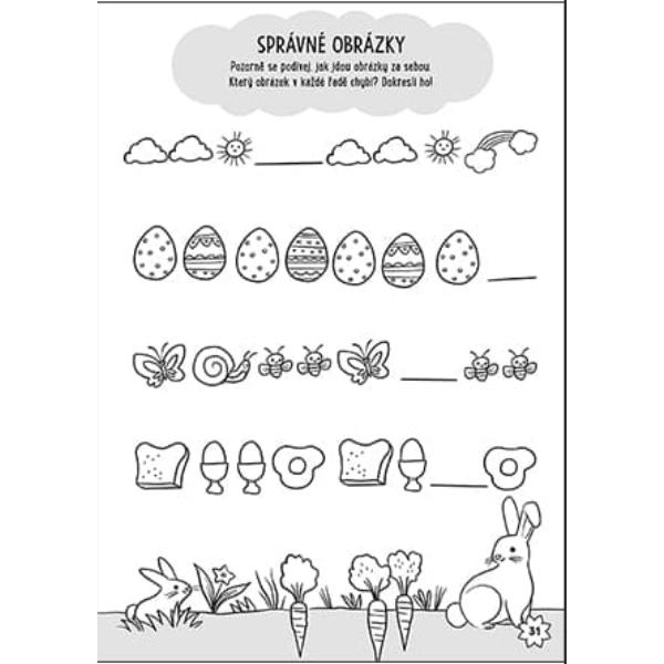 Logické hry, hledání rozdílů, počítání, paměťové hry, bludiště a omalovánky.