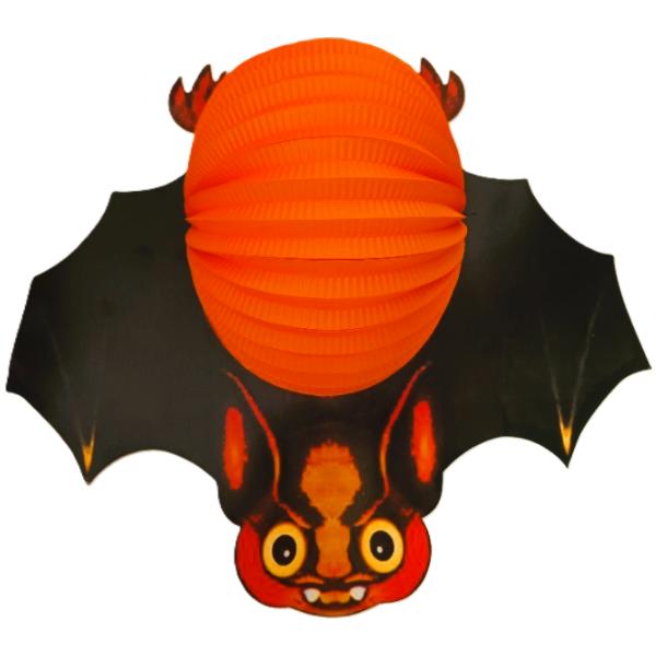 Papírový lampion v podobě oranžového netopýra je perfektním doplňkem na párty!