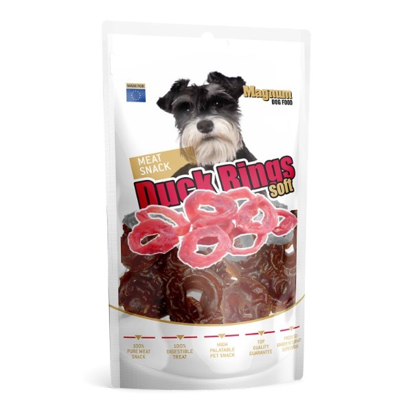 Měkká, přírodní masová pochoutka z kachní svaloviny formovaná do kroužků.