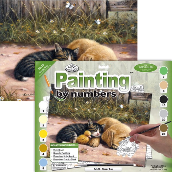 Každý se může stát malířem! Vymalujte obraz s motivem spícího psa a kočky a naučte se práci se štětcem.