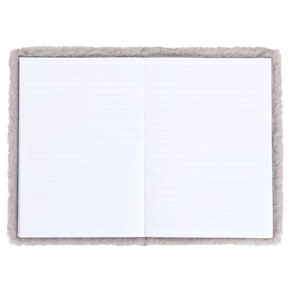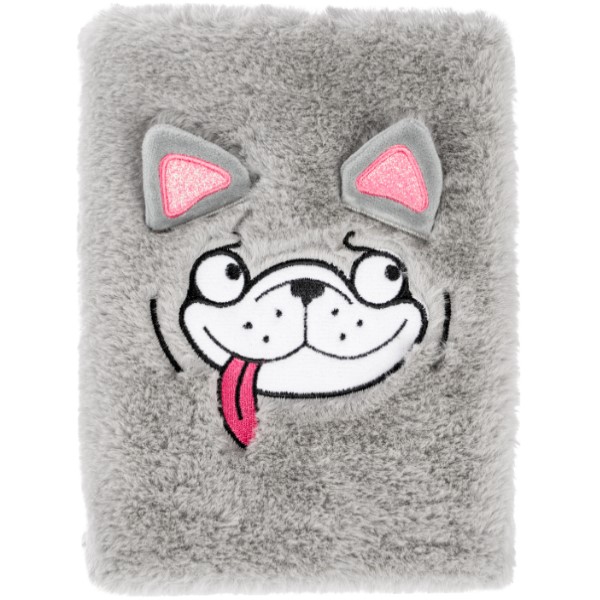 Originální notes s plyšovým povrchem v šedivé barvě s obrázkem psa.