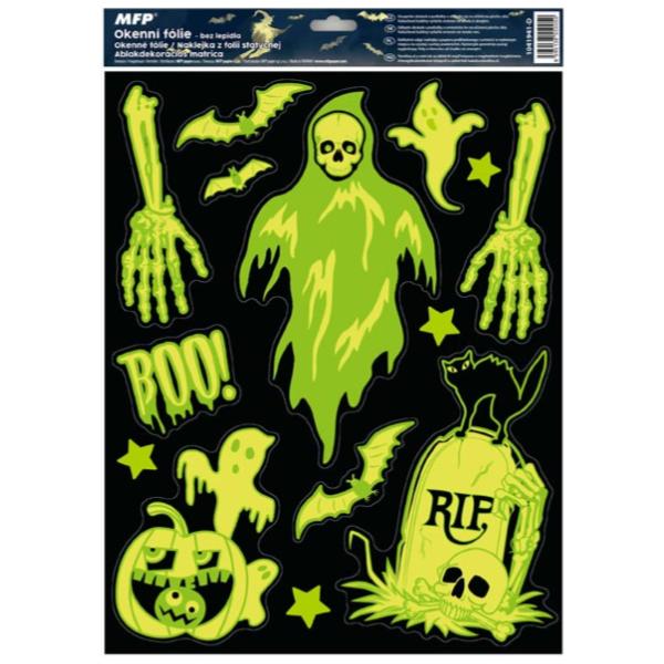 Okenní fólie s halloweenským motivem je ideální pro vytvoření strašidelné atmosféry.