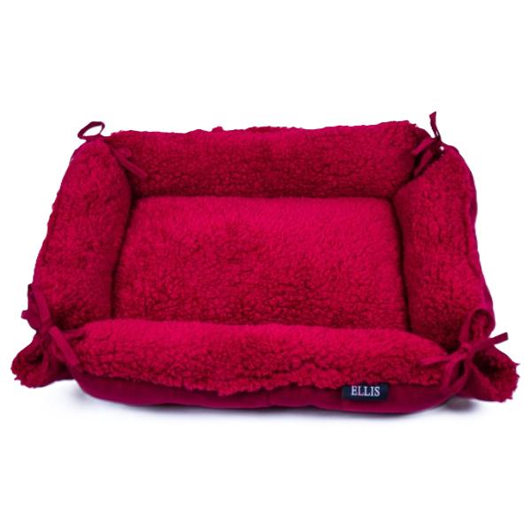 Vnější část pelíšku je se semiše (100% polyester), vnitřní část je beránek (100% polyester) a náplň je polyesterové rouno.