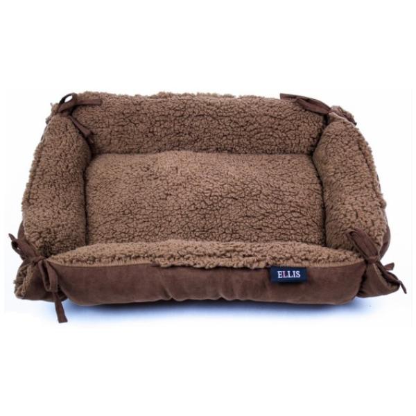 Vnější část pelíšku je se semiše (100% polyester), vnitřní část je beránek (100% polyester) a náplň je polyesterové rouno.