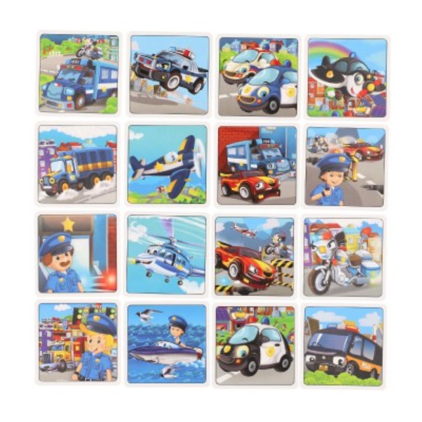 Pexeso s obrázky policie je určena především dětem, ale i starším hráčům s velmi dobrou pamětí a postřehem.