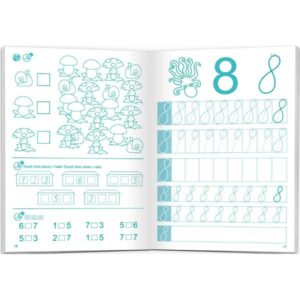 Moderní způsob nácviku psaní číslic. Maxi číslice slouží k procvičování tahů a k uvolnění zápěstí. Obrázek na vybarvení napomáhá ke snadnému zapamatování číslic. Vhodné pro domácí procvičování.