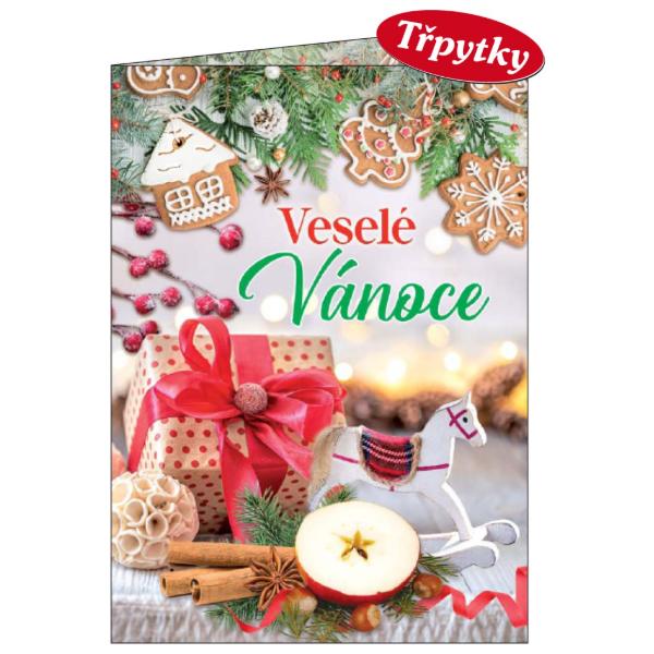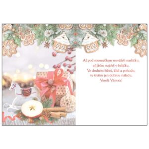 Text uvnitř: Až pod stromečkem rozvážeš mašličku, ať lásku najdeš v balíčku. Ve druhém štěstí, klid a pohodu, ve třetím jen dobrou náladu. Veselé Vánoce!