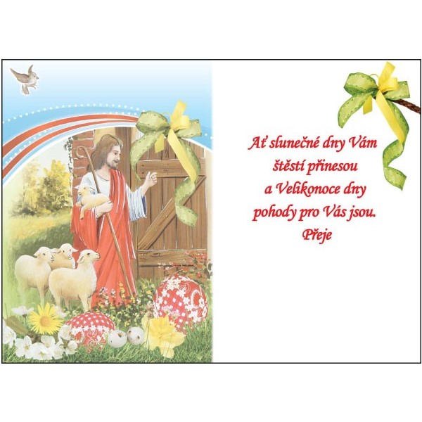 Text uvnitř: Ať slunečné dny Vám štěstí přinesou a Velikonoce dny pohody pro Vás jsou. Přeje