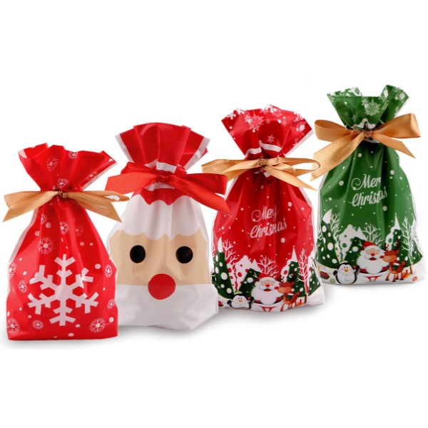 Stahovací sáčky s vánočním designem jsou skvělé na balení dobrot (bonbónů, oříšků, sušeného ovoce apod.) i dárků.