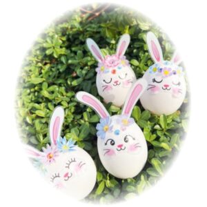- Opatrně vyjměte pár očí z archu samolepek a přilepte na vejce.