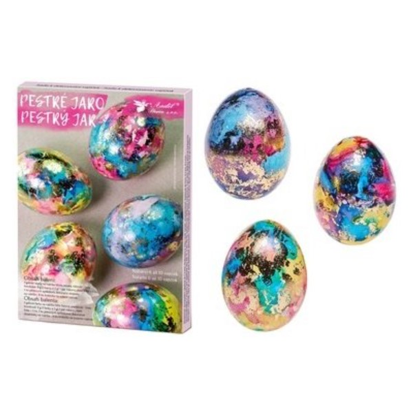 – 3 gelové barvy na vajíčka (žlutá, modrá, růžová), čistá hmotnost 9 g (3 x 3 g)