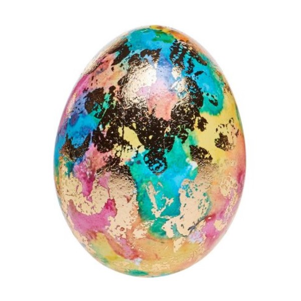 3. Vajíčko dejte na stojánek. Pěnový aplikátor namočte v barvě. Na každou barvu použijte jiný aplikátor. Barvu rychle naneste na vajíčko, nerovnoměrně, spíše chaoticky. Nenanášejte moc barvy.
