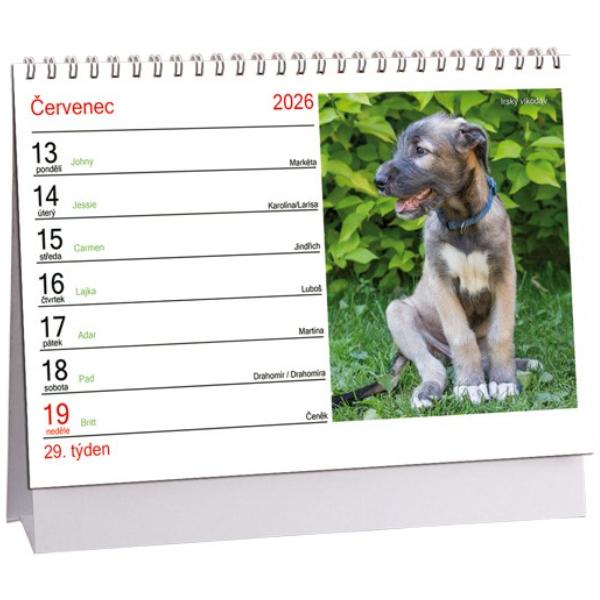 Kalendárium: české týdenní jmenné kalendárium, fáze měsíce + kalendář psích jmen