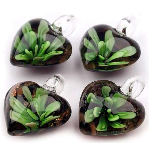 Přívěsky jsou vyrobené ze skla, ve svých středech mají neopakovatelné vzory a probarvení.