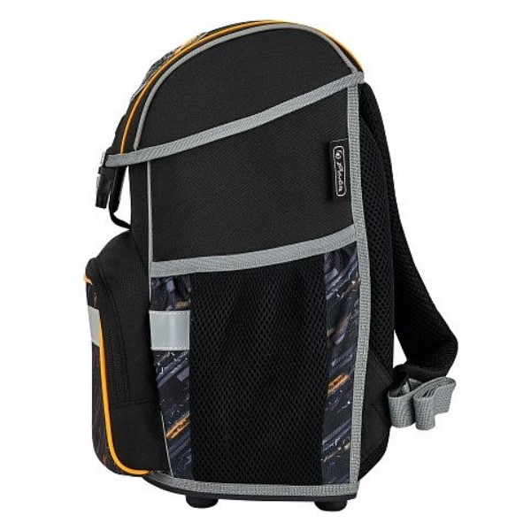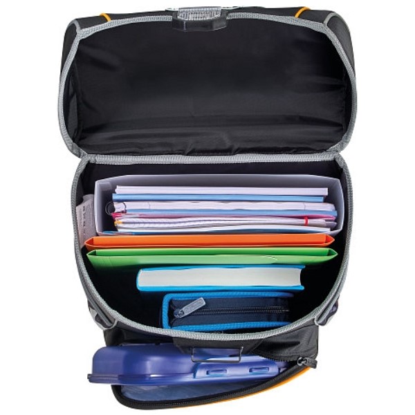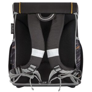 Školní taška má ergonomicky tvarované a prodyšné polstrování zad, nastavitelné ramenní popruhy, výškově nastavitelný hrudní pás. Hlavní kapsa je s odděleným prostorem pro knihy, boční kapsy s elastickými pásky, přední kapsa na zip, stabilní spodní deska, pohodlná rukojeť, zavírání Click lock,. Je vybavena reflexními prvky Oralite pro lepší viditelnost dítěte, integrovaná odrazka v zámku.