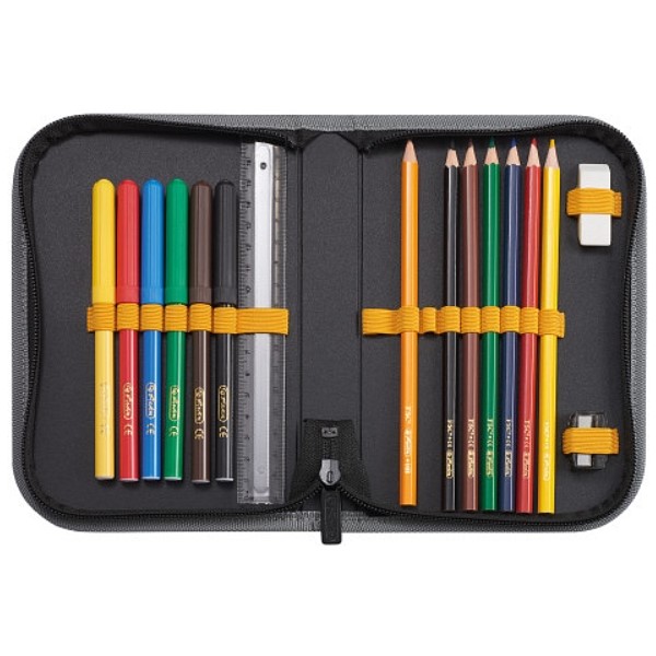Výbava: penál 16 dílů, sáček na cvičky, kulaté pouzdro
