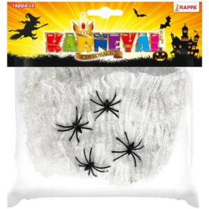 Tato bílá síť má 60 gramů a součástí jsou 4 černí plastoví pavoučci ve velikosti 3 cm.