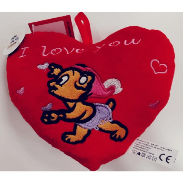 Srdíčko z plyše s motivem medvídka, s nápisem „I Love You“.