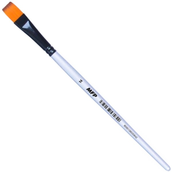 Štětec plochý s jemným syntetickým vlasem a dřevěnou rukojetí.