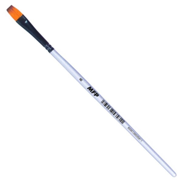 Štětec plochý s jemným syntetickým vlasem a dřevěnou rukojetí.