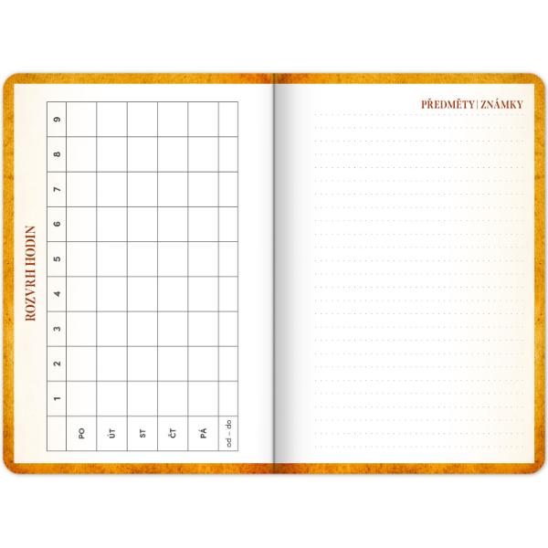 Studentský diář s oblíbeným motivem Harryho Pottera k usnadnění organizace úkolů a plánování aktivit, který ocení každý student i studentka.