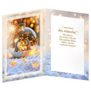 Blahopřání vánoční svítící – po stisknutí tlačítka se rozsvítí LED světlo a rozsvítí se vánoční kuličky a hvězdy.