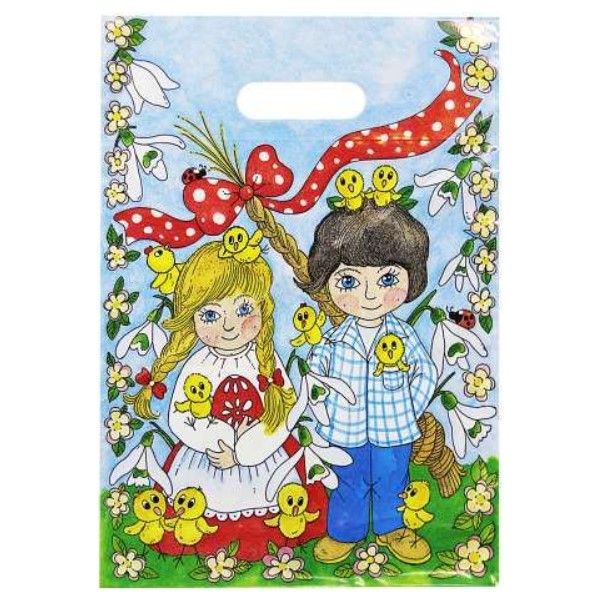 Motiv je na tašce umístěn na přední straně, zadní strana je bílá bez potisku.