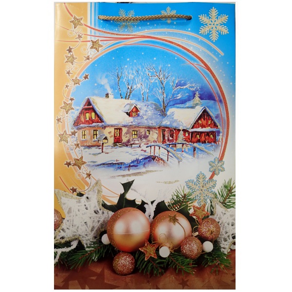 Dárková taška L s vánočním motivem, s glitry.