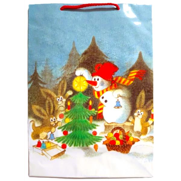 Papírová dárková taška s vánočním/zimním motivem ve velikosti L.