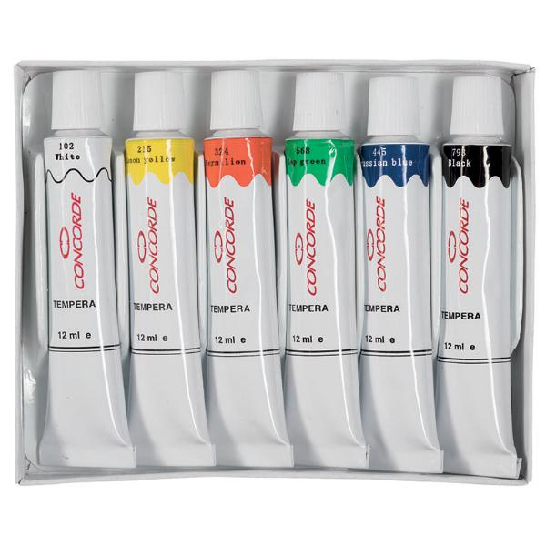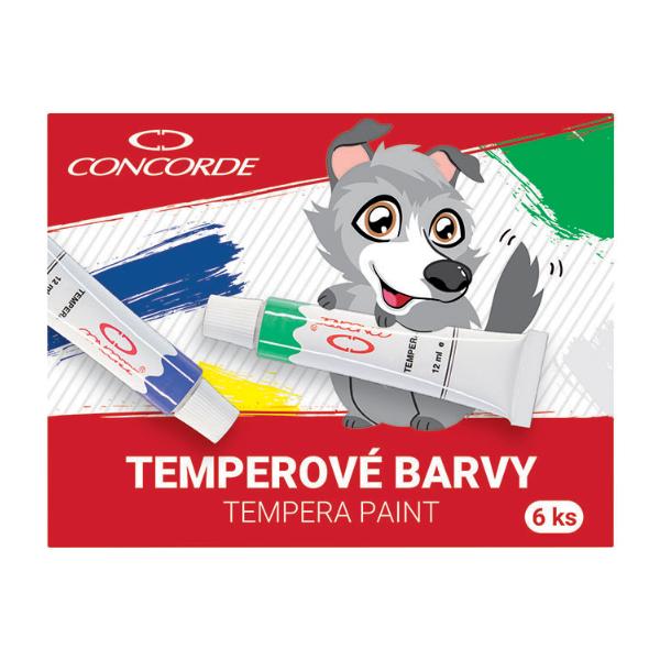 Sada 6-ti temperových barev v kovové tubě.