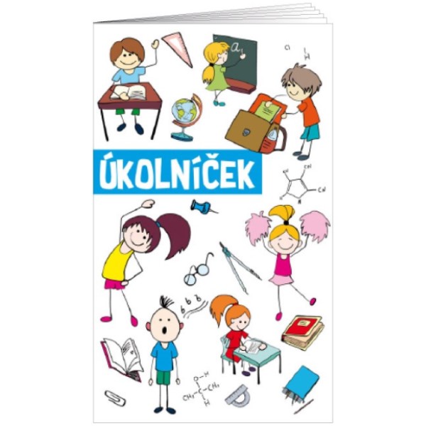 Školní deníček – úkolníček s motivem školy, vhodný pro zapisování domácích úkolů a dalších poznámek.