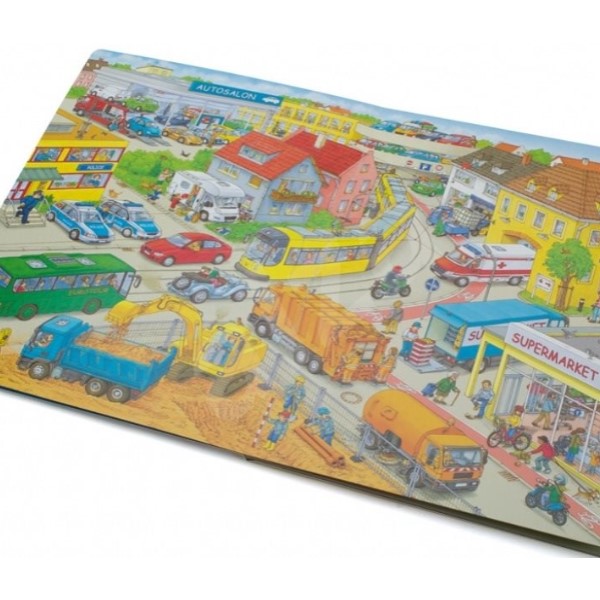 Na silnicích, na dálnicích, na závodní dráze, ale i jinde – všude jsou k vidění auta a různá další vozidla. Některá se jen předvádějí, některá pomáhají na stavbách, nebo dokonce při zachraňování lidských životů… Vedle množství podrobných obrázků přináší kniha také řadu námětů pro vlastní příběhy malých milovníků aut. Tato velkoformátová kniha přináší panoramatické obrazové vhledy do prostředí silnic, staveb, ale i jiných.