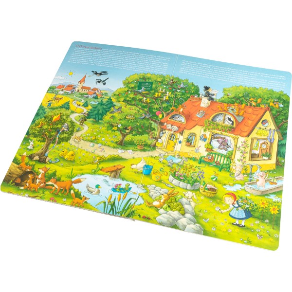 Kromě napínavých dobrodružství hlavních hrdinů tu lze objevit také spoustu drobných příhod dalších pohádkových postav, tvorů a netvorů. Stačí jen otevřít knihu, ponořit se do pohádkového světa a začít ho objevovat. Tak hurá do toho! Pomůžete princi najít ve spícím zámku se spoustou komnat a tajemných zákoutí spanilou Růženku? A dokážete podle obrázků převyprávět všechny udatné činy statečného krejčíka? Nebudete se bát v tajemném nočním lese, kde ježibaba v perníkové chaloupce vězní Jeníčka a Mařenku? A co takhle v chaloupce u lesa, kam se vydáte s Červenou karkulkou? Nenechte se zmást všemi těmi dovádějícími a rozesmátými zvířátky, kterých je plný kraj, a dávejte pozor, koho najdete v babiččině posteli! Ostražitost bude třeba i u sedmi trpaslíků – na Sněhurku má totiž spadeno zlá macecha a usiluje jí o život. Ještě že v pohádkách vždycky dobro zvítězí nad zlem! O tom by mohla vyprávět i Popelka – nebo to raději zkusíte vy, malí čtenáři?
