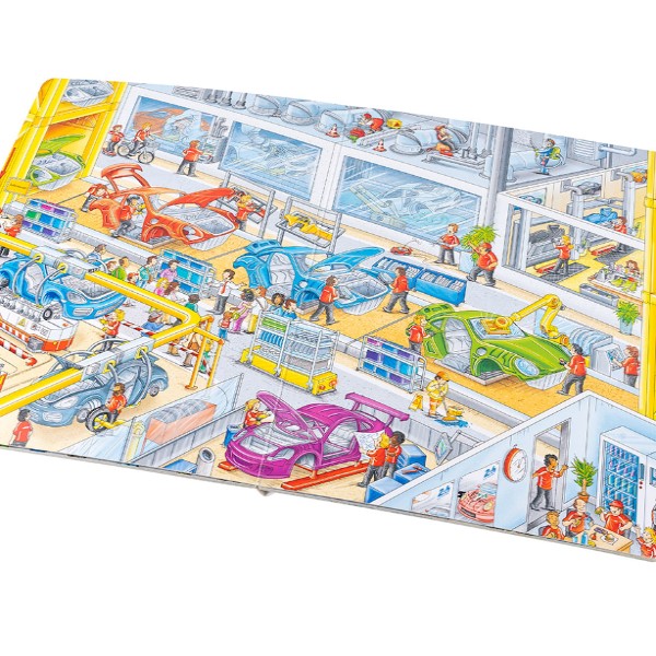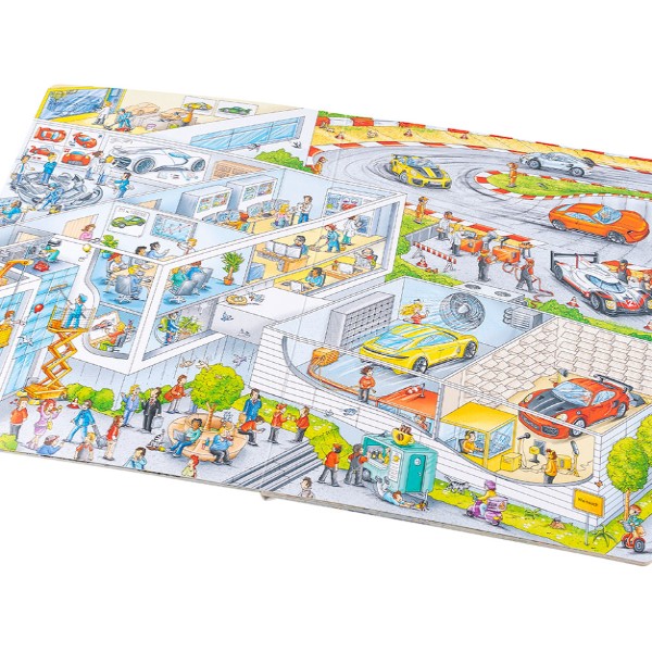 Díky této velké obrázkové knížce můžeš pozorovat zaměstnance továrny přímo při plnění úkolů souvisejících s vývojem a výrobou těchto úžasných aut. Zúčastníš se také testování nového prototypu na zkušební trati v Lipsku nebo populárního vytrvalostního závodu 24 hodin Le Mans a v muzeu Porsche pak budeš obdivovat krásné historické vozy. Knížka přibližuje nejen čilý ruch ve výrobních závodech, na okruzích nebo v továrním muzeu značky Porsche, ale seznamuje také s řadou modelů těchto obdivovaných vozů, a dozajista proto potěší automobilové nadšence všech věkových kategorií!