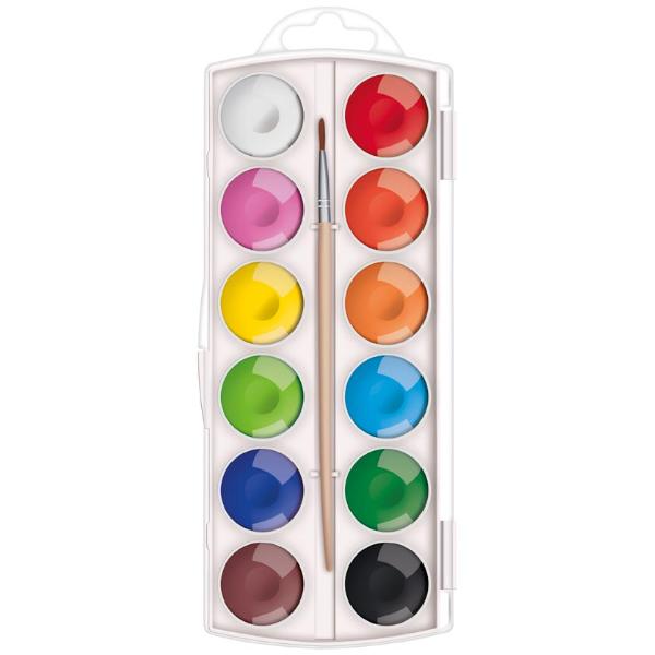 Vodové barvy obsahují 12 intenzivních a zářivých barev s vysokým obsahem pigmentu, netoxické.