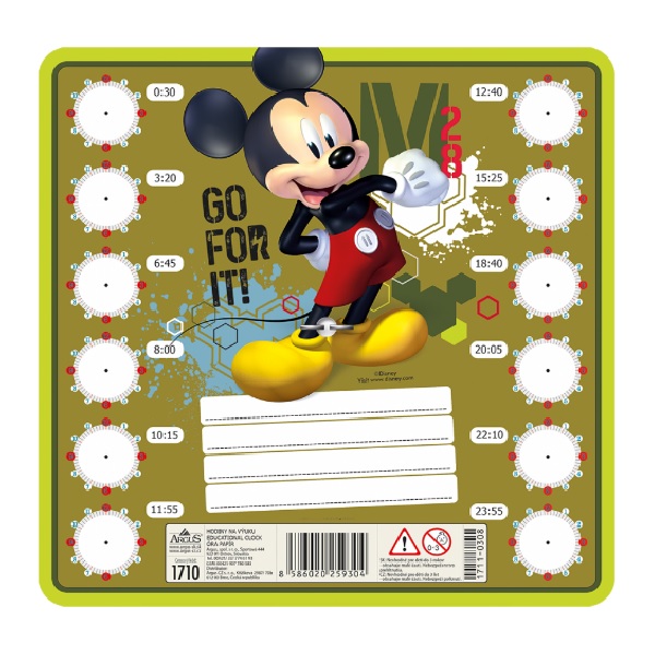 Výukové hodiny s dětským motivem Mickey jsou praktickou pomůckou pro první učení času.