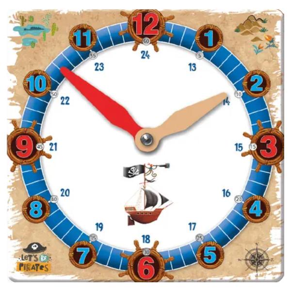 Výukové hodiny s dětským motivem Let’s be pirates jsou praktickou pomůckou pro první učení času.
