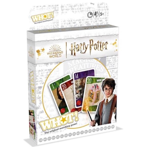 WHOT! Harry Potter je karetní hra typu UNO s motivem vašich oblíbených postav z Harryho Pottera. Pozor, hra vás vtáhne jako svižná cesta na mistrovství světa ve famfrpálu! Zbavte se svých karet rychleji než soupeři. Hru vyhrává ten, kdo první nemá v ruce žádné karty. Jednoduchá a rychlá karetní hra WHOT! se bude líbit nejen fanouškům Harryho Pottera!